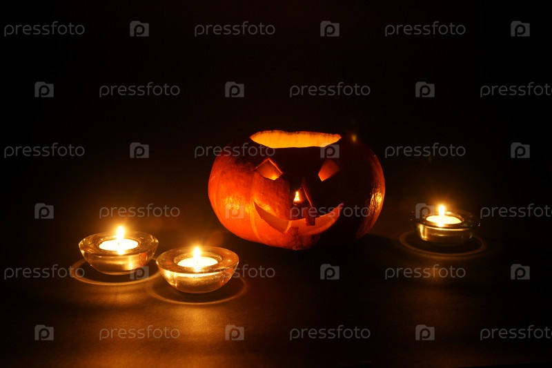 Тыква и свечи в темноте. Традиционный фонарь на Хэллоуин
