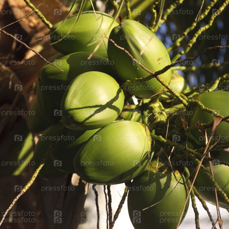 Кокосовые орехи, растущие на дереве
