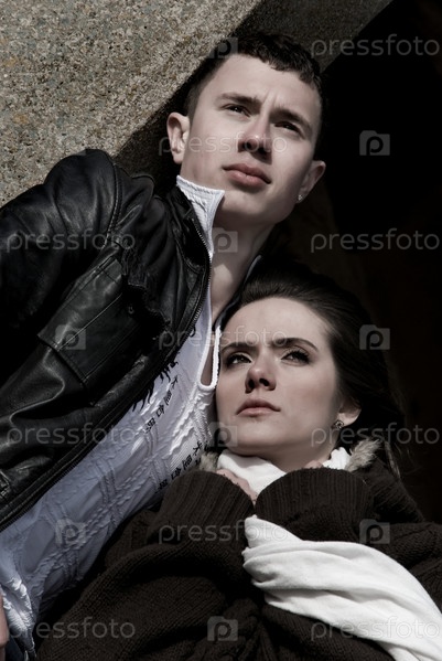 Молодая пара в зимней одежде