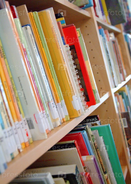 Книги на полке в библиотеке