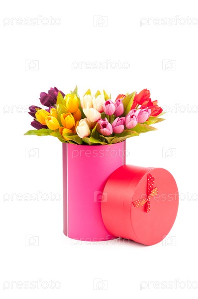 Подарочные коробки и тюльпаны