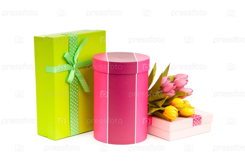Подарочные коробки и тюльпаны