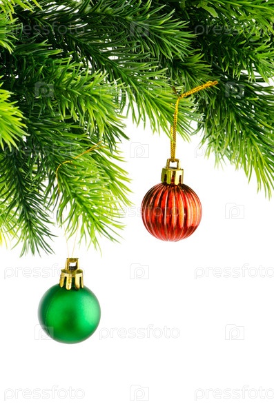 Елочные шары на еловой ветке