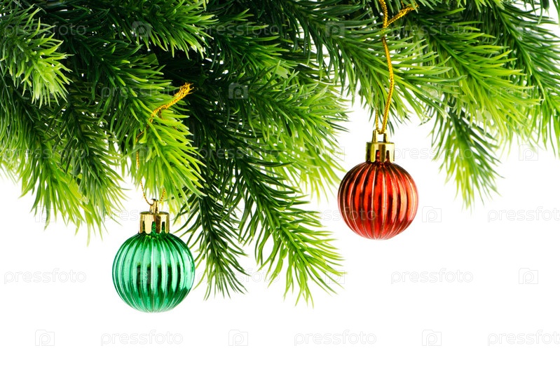 Елочные шары на еловой ветке
