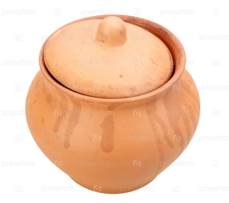Керамический горшок с крышкой. Изолированный на белом фоне
