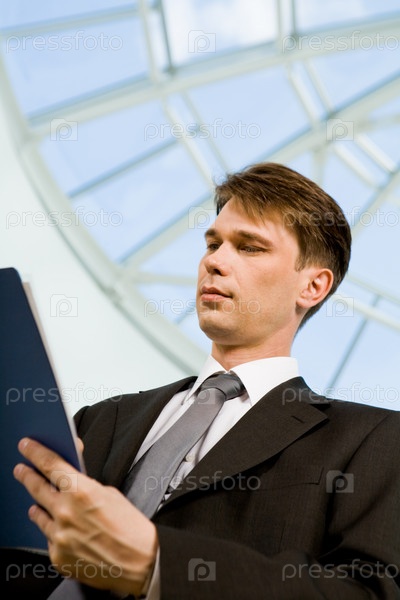Изображение успешного молодого человека, изучающего документы