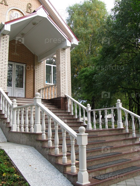 Лестница, ведущая к входу в дом, в окружении деревьев