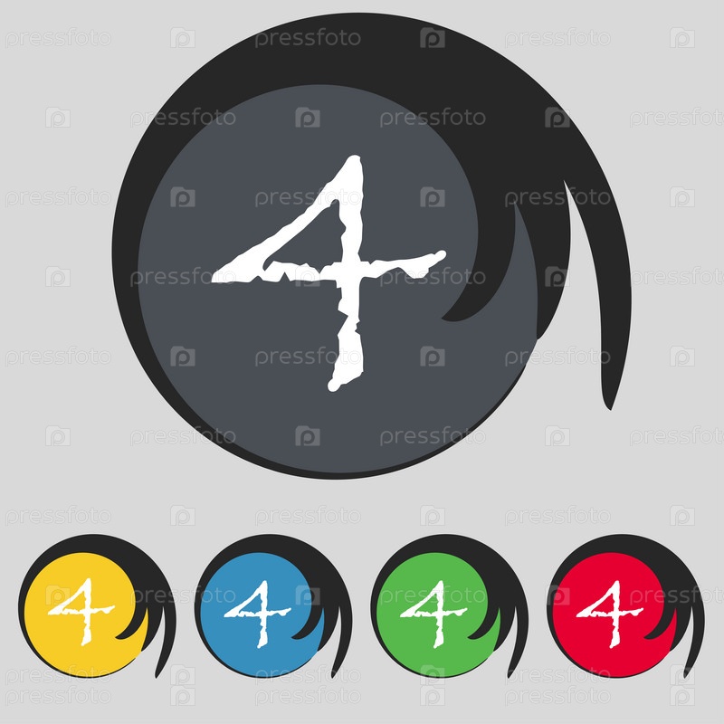 Номер четыре значок. Набор цветных кнопок. Вектор