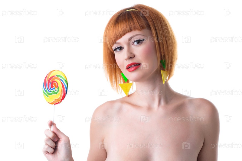 Рыжая модель с большим леденцом