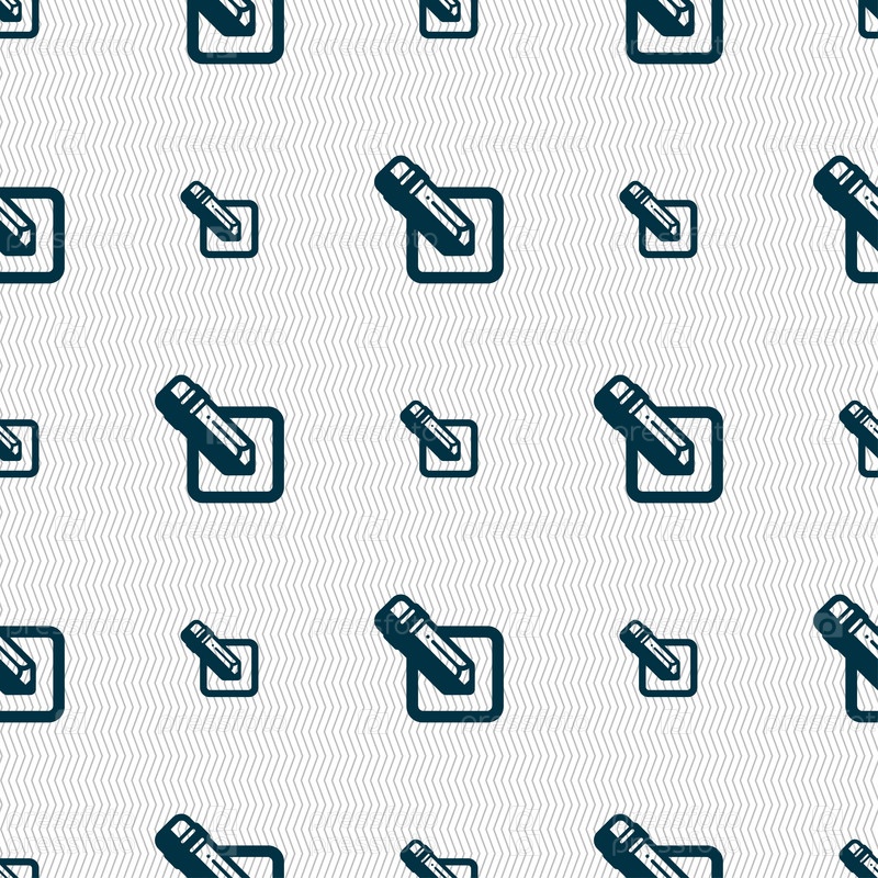 Карандаш значок знак. Бесшовный фон с геометрической текстурой. Вектор