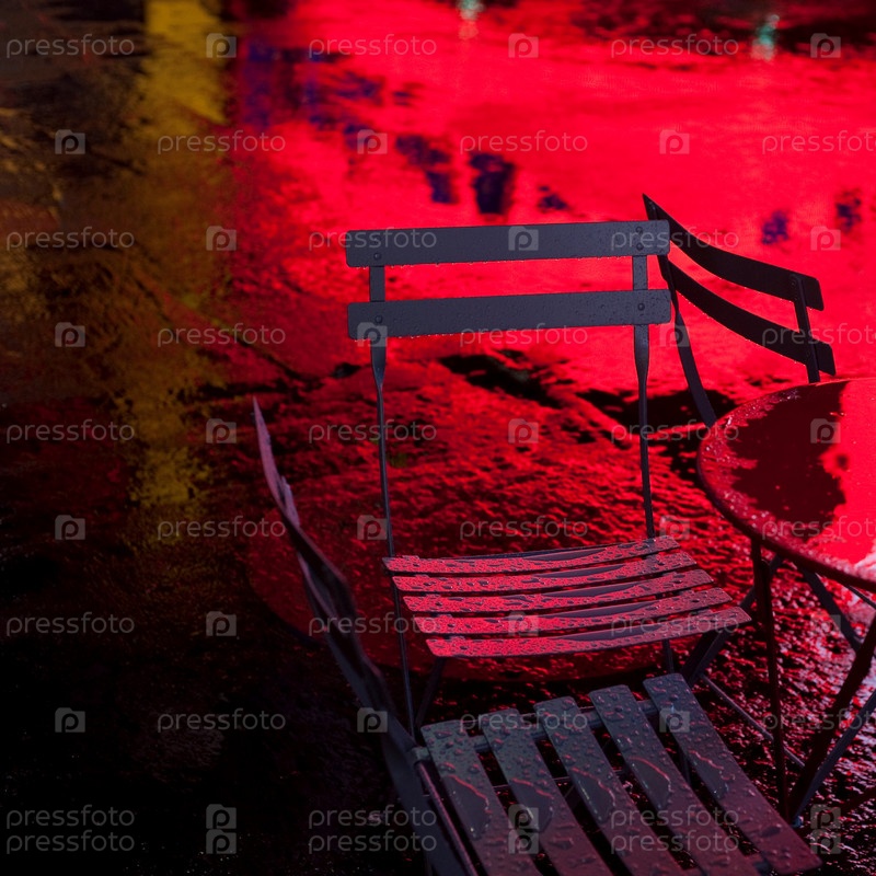 Пустые столы и стулья в Таймс-сквер Манхэттена, Нью-Йорк, США
