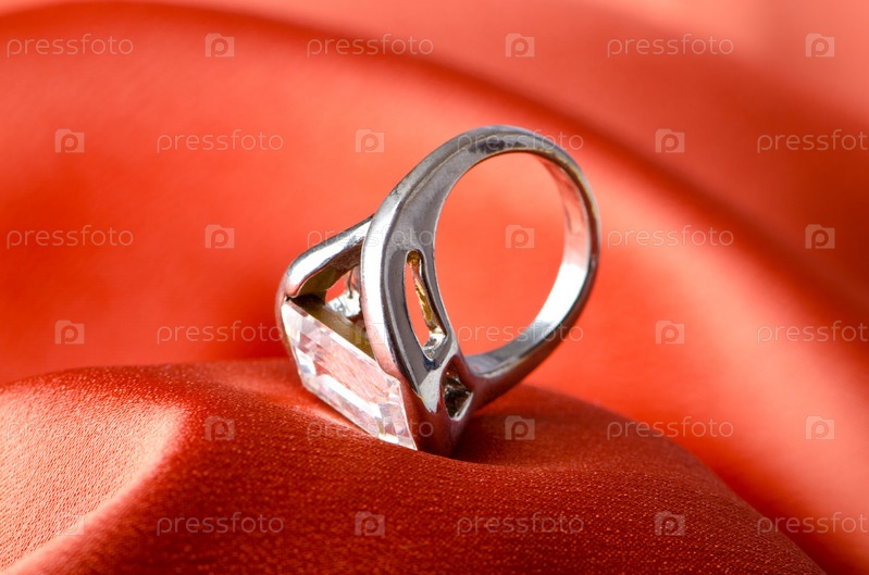 Кольцо крупным планом на шелковой ткани