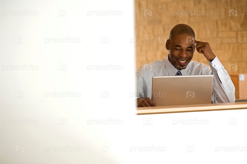 Бизнесмен работает на ноутбуке