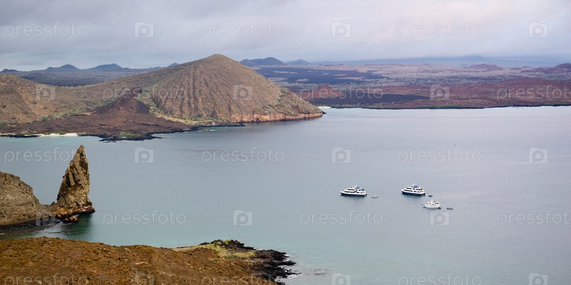Лодки в Тихом океане, остров Бартоломе, Галапагосские острова, Эквадор