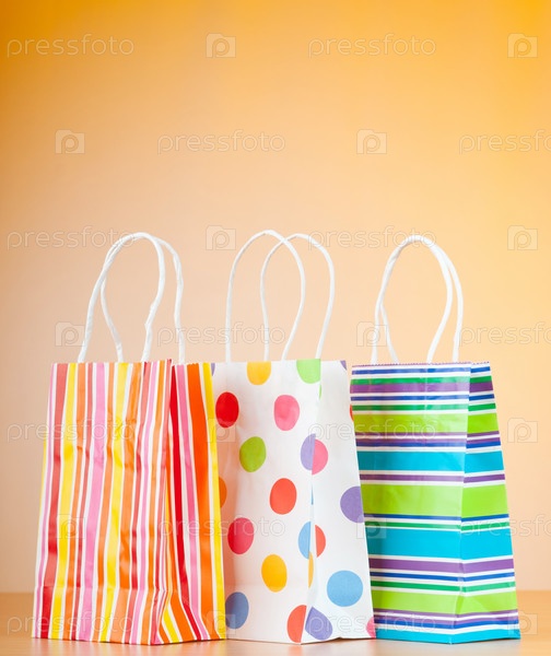 Разноцветные пакеты на оранжевом фоне