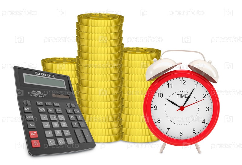 Стопки золотых монет с будильником