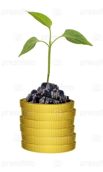 Зеленое растение на золотые монеты