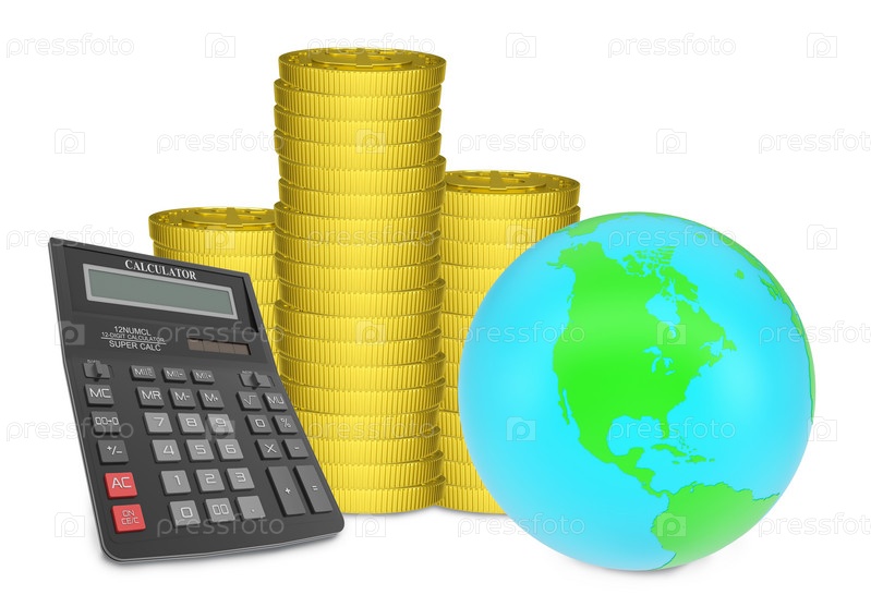 Стопки золотых монет и калькулятор
