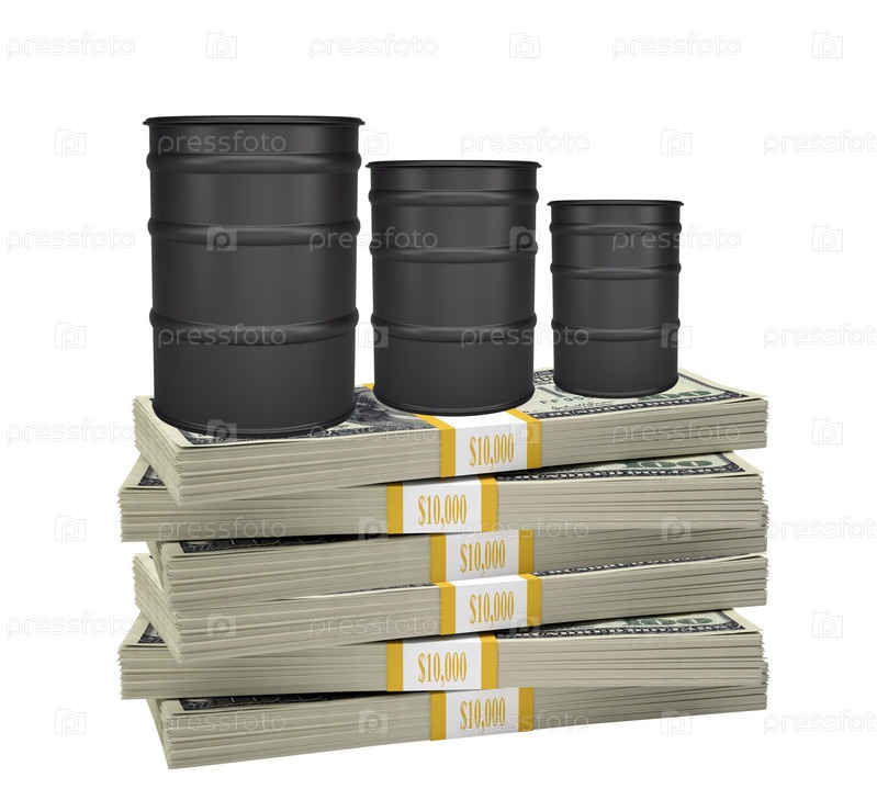 Бочки нефти на стеке денег