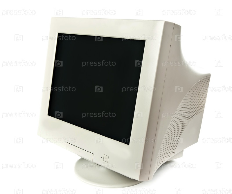 Устаревший ЭЛТ-монитор на белом фоне