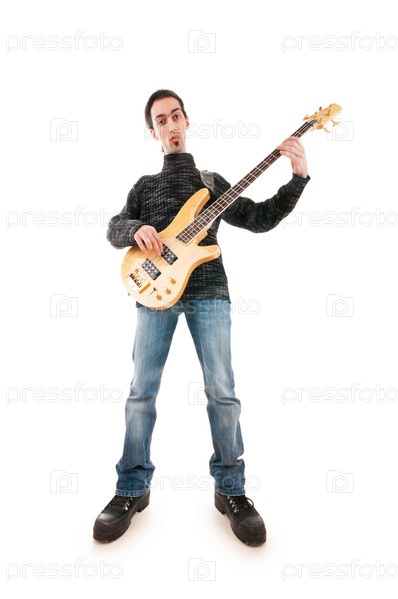 Гитарист, изолированный на белом фоне