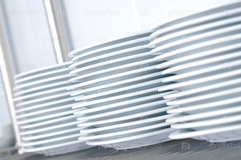 Три стопки белых тарелок