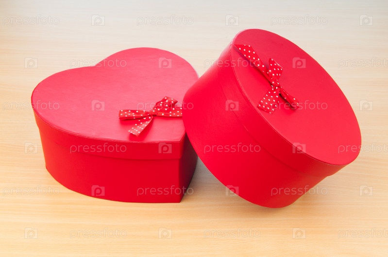 Две красные подарочные коробки на столе