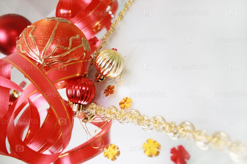 Красные новогодние украшения и место для текста