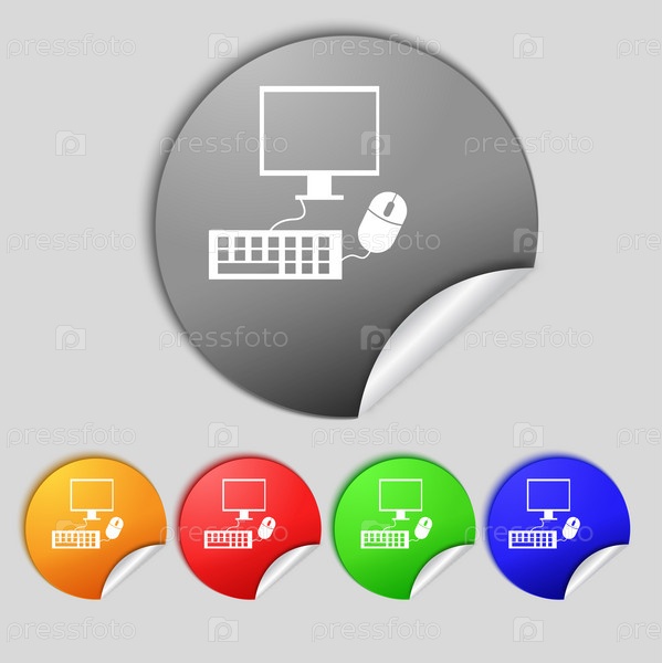 Широкоформатный монитор, клавиатура, мышь знак