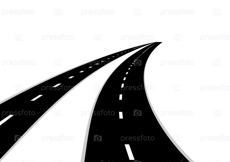 Шоссе уходит вдаль. Иллюстрация на белом фоне