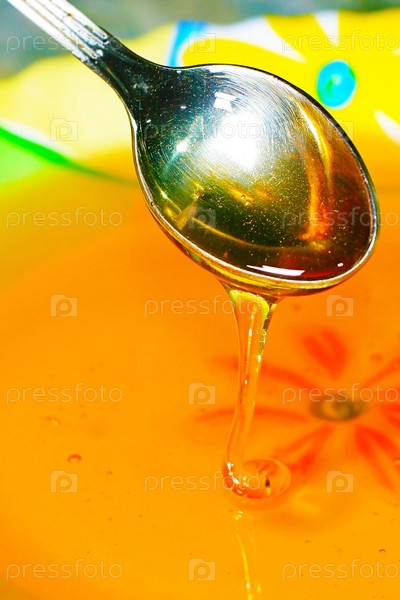 Мед в тарелке с ложкой
