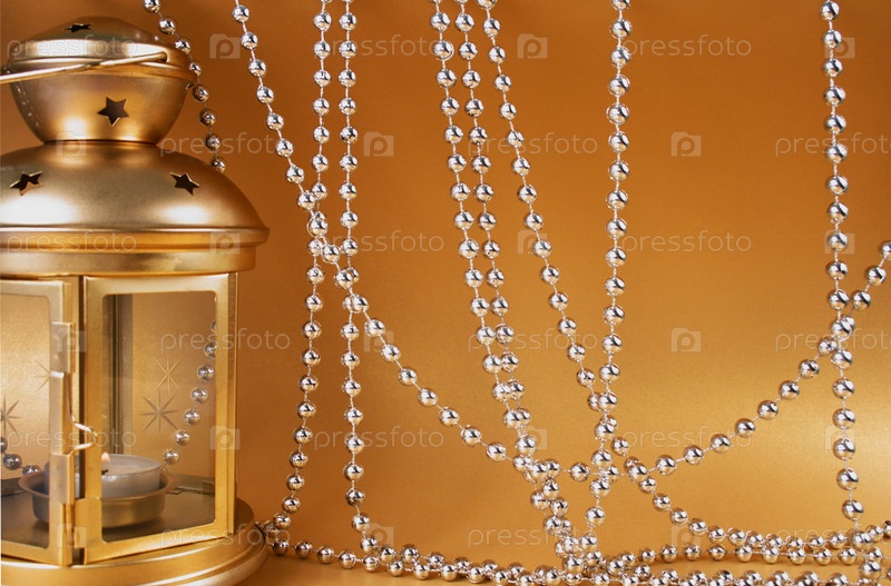 Рождественские атрибуты: лампа и бусы