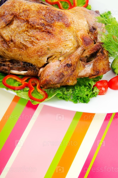 Жареная индейка на тарелке крупным планом