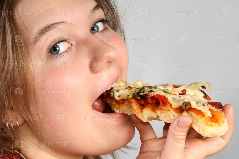 Девушка ест пиццу