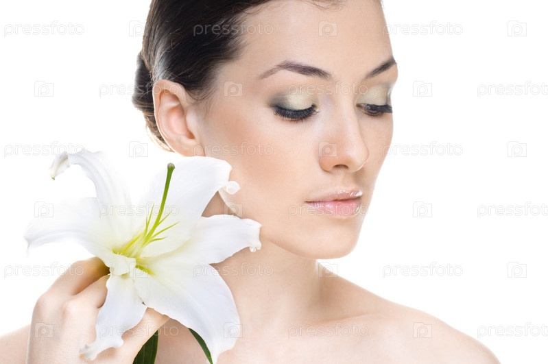 Красивая цветочная девушка на белом фоне
