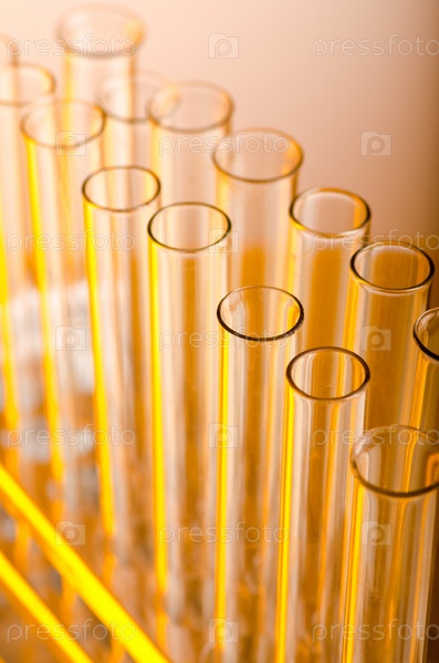 Химическая колбы на желтом фоне