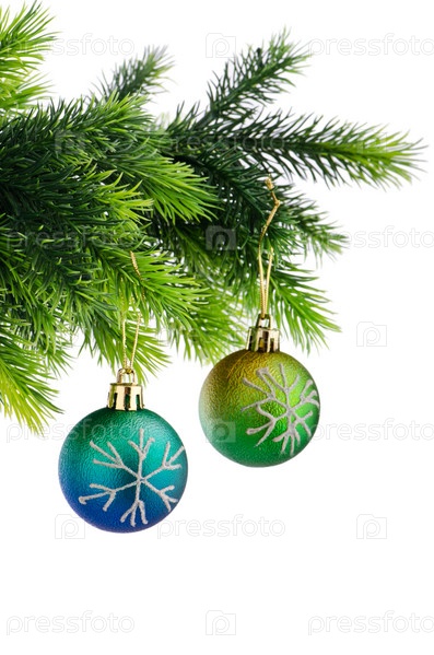 Рождественские шары на елке, белый фон