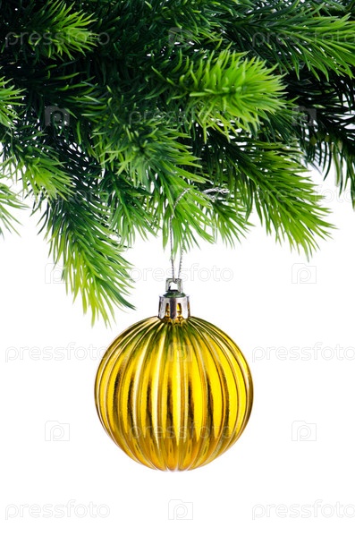 Рождественский шар на елке, белый фон