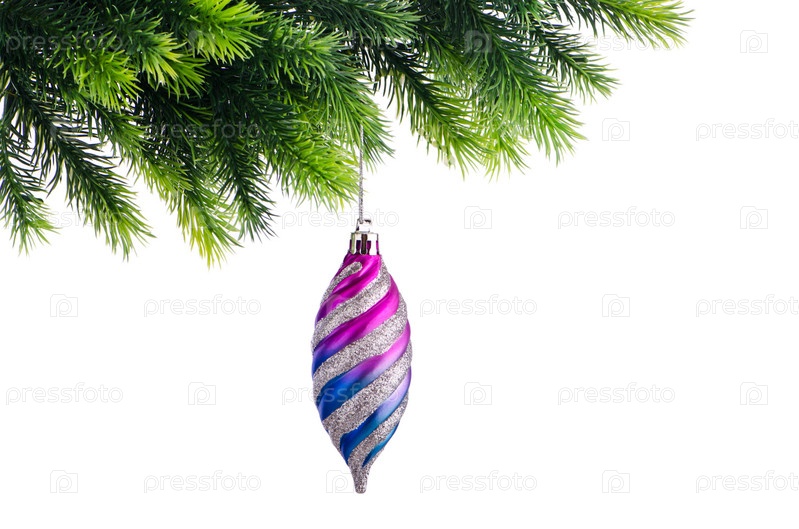 Рождественская игрушка на елке, белый фон