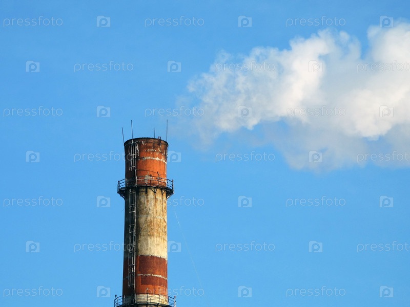 Топливная труба генерирующей станции и дым из трубы на фоне голый