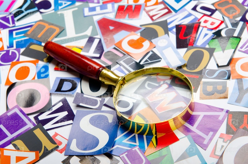 Лупа и буквы, вырезанные из журналов