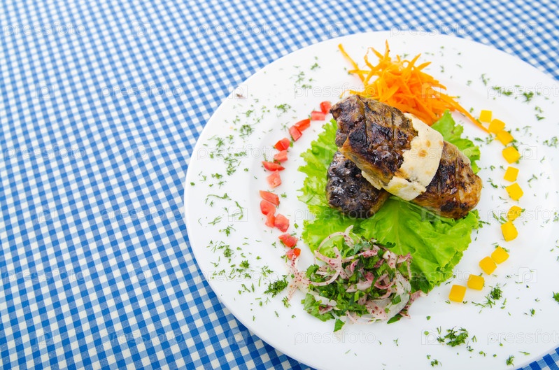 Кебаб на тарелке крупным планом