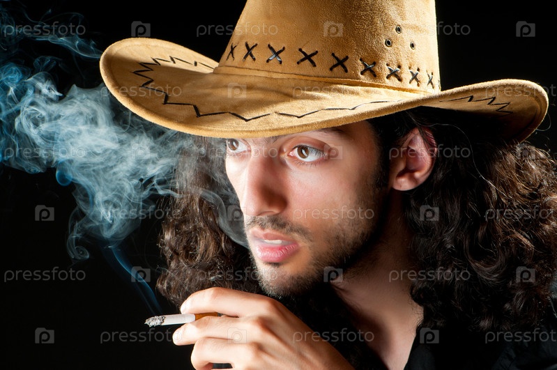 Человек в шляпе курит