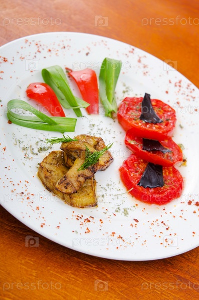 Жареные овощи на тарелке крупным планом