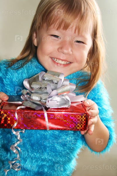 Счастливая девочка с подарком в руках