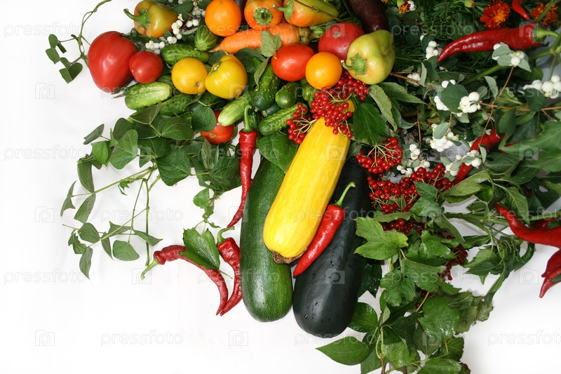 Многообразие свежих овощей на белом фоне