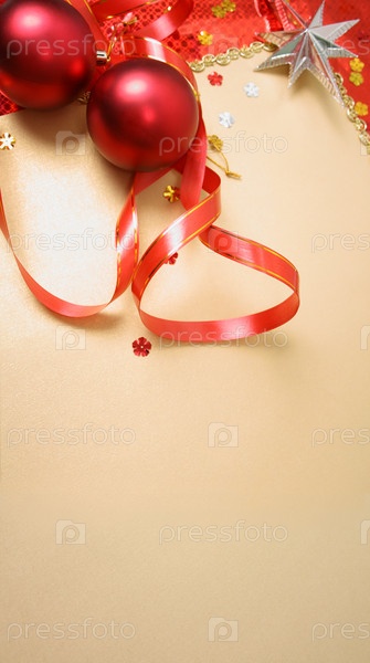 Новогодние елочные шары, лежащие на открытке