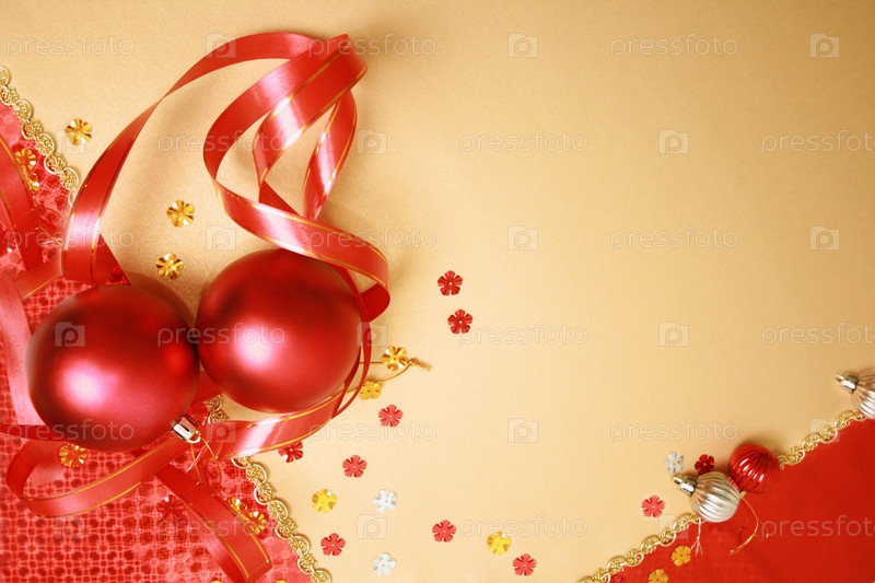 Новогодние елочные шары, лежащие на открытке