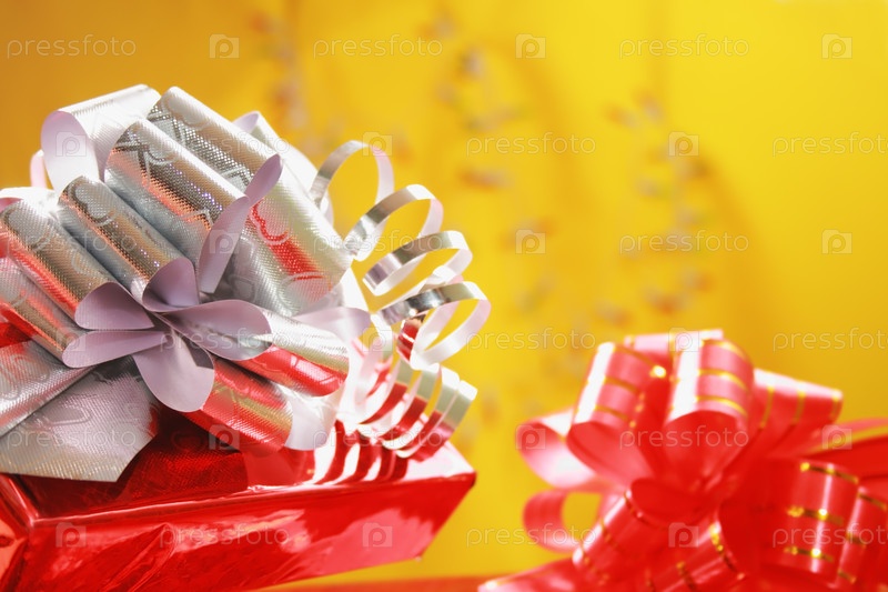 Подарки в красной упаковке с большими бантами