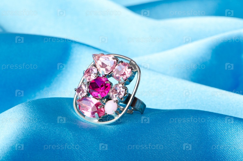Кольцо с камнями на голубом фоне